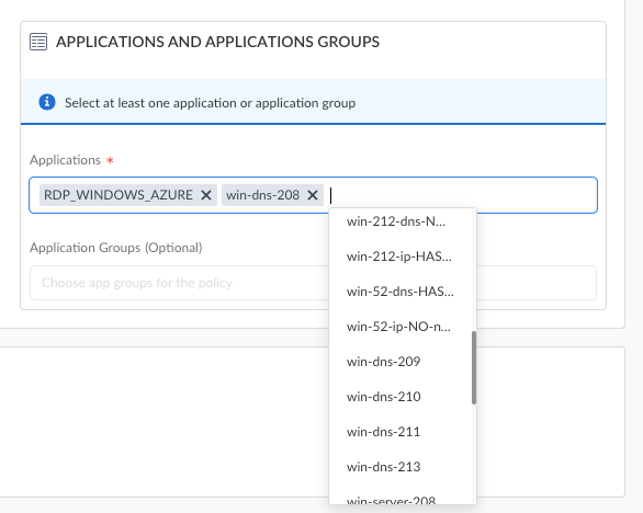 If you select an application, the Application Groups field becomes optional. Similarly, if you select an application group, the Applications field becomes optional.