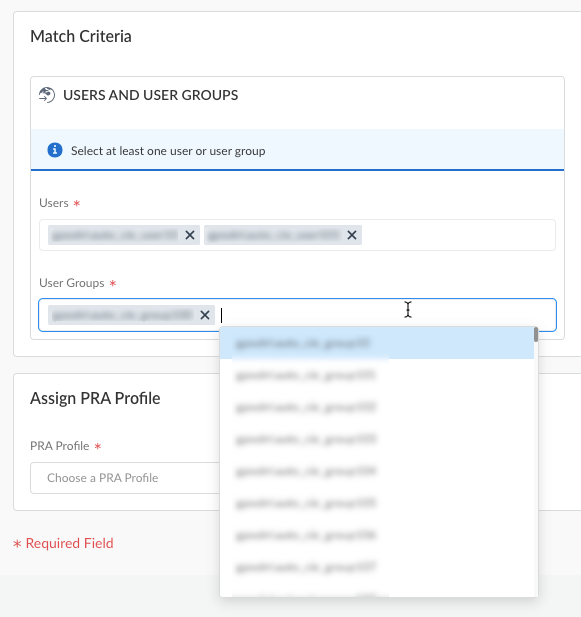 Select a PRA Profile that for the apps in this policy. When the matching users access the apps in this policy, they will be able to perform the actions that are defined in the PRA profile.