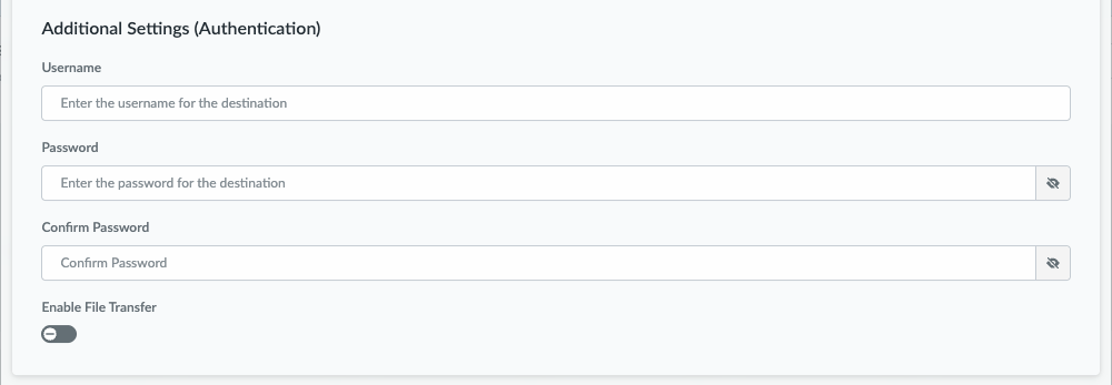 2. The SFTP Hostname is automatically populated with the Destination FQDN or IP address. No entry is required.