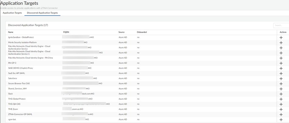 Add the applications that are auto-discovered by ZTNA Connector to the Connector Group.- Set Up Auto Discovery of Applications Using Cloud Identity EngineSelect ConfigurationZTNA ConnectorApplication TargetsDiscovered Application Targets.