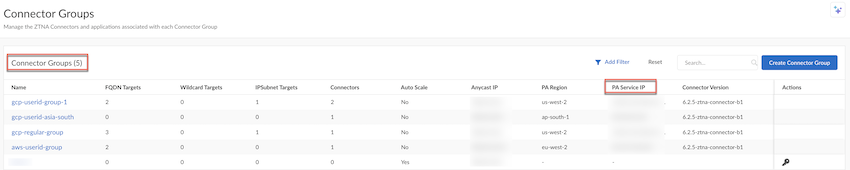 Deploy your ZTNA Connector VMs in your data center.(Optional) Select ConfigurationZTNA ConnectorConnector Groups, make a note of the PA Service IP address of the Connector Group, and add this IP address to your organization's allow lists.You can see PA Service IP under Connector Groups only after you onboard your Connector.If required, add this IP address to your allow lists so that your network can transmit and receive ZTNA Connector traffic.