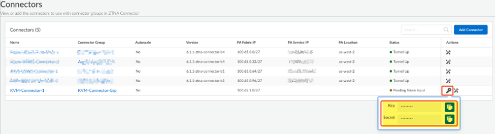 - Create a Connector Group and a Connector for the KVM host.Select ConfigurationZTNA ConnectorConnectors, and find the connector you created for the KVM host, Copy Token in the Status area, and copy the Key and Secret values.![]() Upload the qcow image you downloaded from the CSP to the KVM host.If you have not already, build and associate the virtual bridge interfaces on the KVM host and prepare the host by entering the following commands: Upload the qcow image you downloaded from the CSP to the KVM host.If you have not already, build and associate the virtual bridge interfaces on the KVM host and prepare the host by entering the following commands:- brctl addbr virbr0