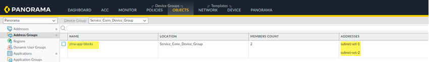 Create a policy to allow the IP addresses for the IP subnets used for the apps.- Go to ConfigurationNGFW and Prisma AccessObjectsAddressAddresses and Add address objects based on the IP addresses you retrieved.