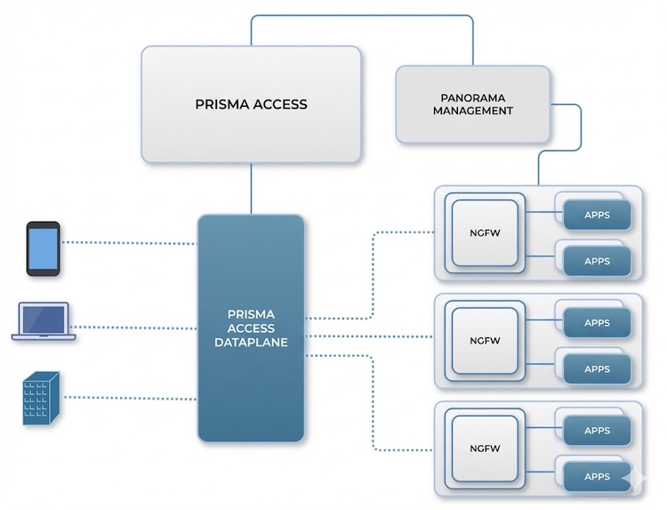 Panorama-managed NGFWs and the Prisma Access cloud.