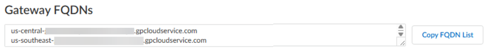 To find the gateway names, go to the Gateway FQDNs section and select Copy FQDN List to get a copy of the list of gateways.