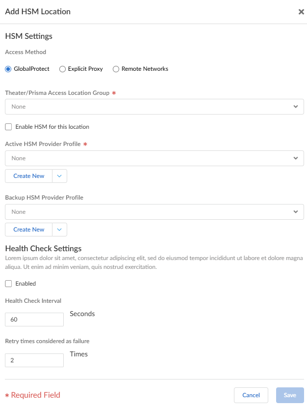 - Click the Enable HSM for this location check box.