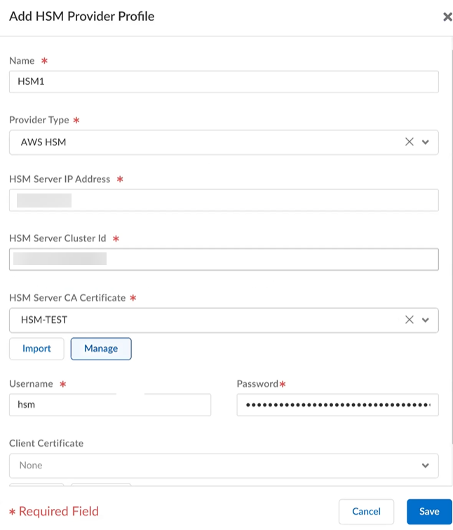 - Active HSM Provider Profile—Select your active HSM provider profile from the drop-down.