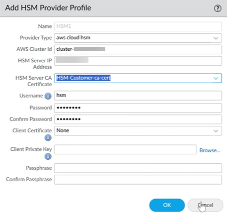Profile using your data from AWS. You can have multiple HSM provider profiles.