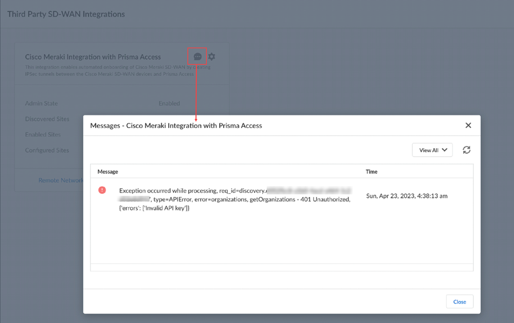 Upon disabling, the system will initiate a complete teardown of all configurations and objects on both Prisma Access and Cisco Meraki.