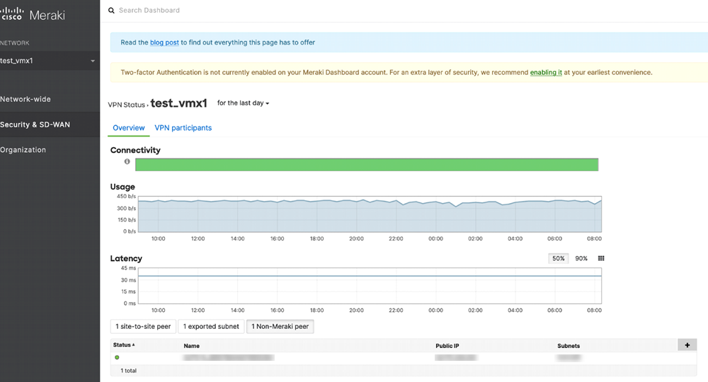 7. Verify the tunnel status in the Cisco Meraki dashboard.