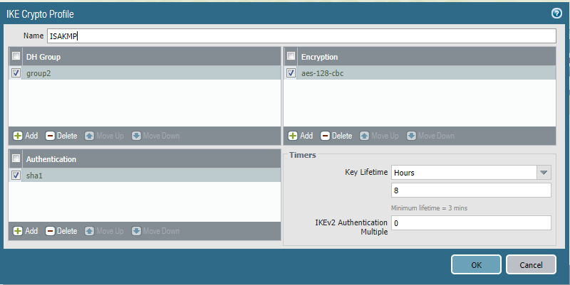 Create an IKE encryption profile.This profile must match the values that you specified in the Prisma Access IPSec configuration.