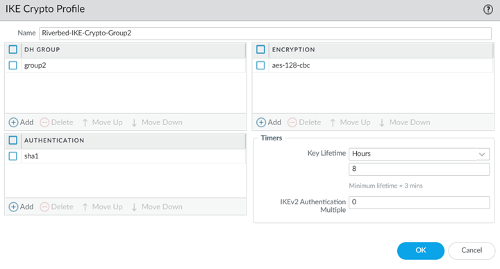Select NetworkRemote_Network_TemplateNetwork ProfilesIKE Crypto.Click Add and create an IKE cryptographic profile with settings that match the settings you made for the ClassicVPN tunnel in SCM.These settings are for the Phase 1 tunnel establishment.