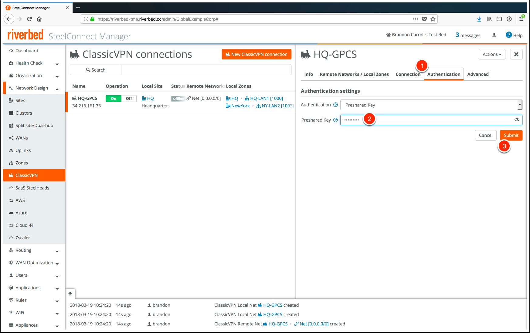 This workflow creates and configures ClassicVPN tunnels between the SteelConnect