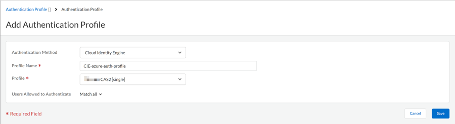 Add the authentication profile from Cloud Identity Engine to Prisma Access.- In Prisma Access, select ConfigurationNGFW and Prisma AccessConfiguration ScopePrisma AccessIdentity ServicesAuthenticationAuthentication Profiles.Ensure to set the scope to GlobalProtect or Explicit Proxy mobile users.Add Profile.Select Cloud Identity Engine as your Authentication Method.Enter a Profile Name.Select the Profile you added in the Cloud Identity Engine app from step 4.Save the changes.