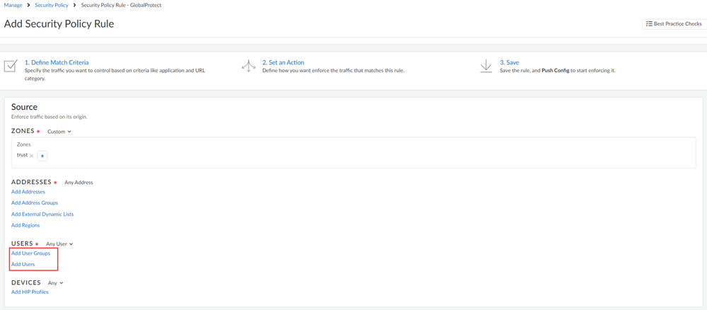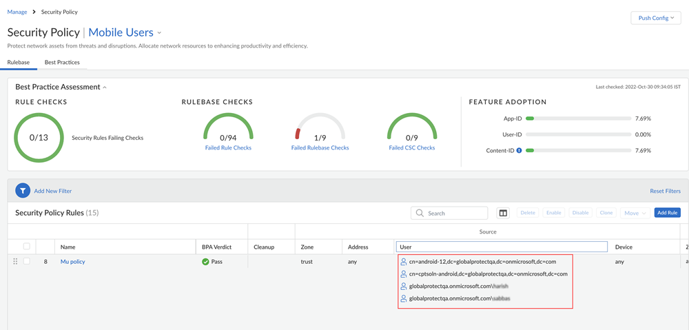 Push the configurations.Verify the user or user group mapping.- For GlobalProtect mobile users only