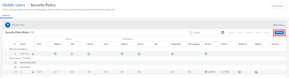 (For explicit proxy mobile users only) Add Rule or edit an existing security policy rule for Explicit Proxy mobile users.Add users or user groups from the Microsoft Entra ID to your security policy rule and save the policy.