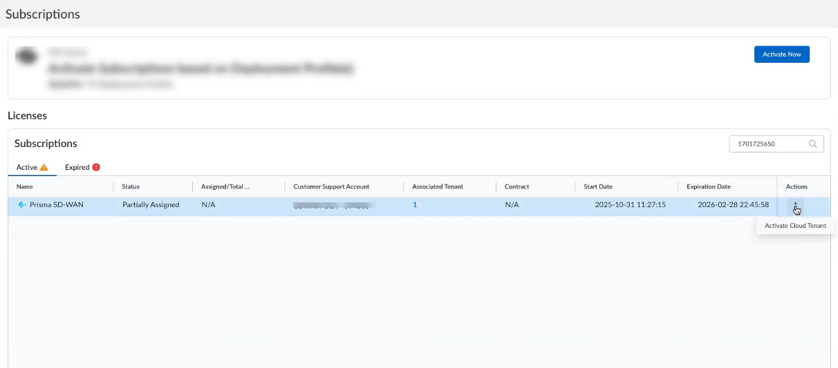 Allocate Partial Prisma SD-WAN Licenses to Child Tenants
