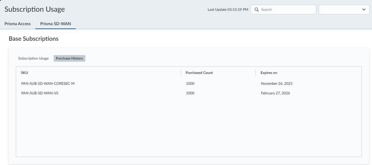page, you can view the purchase history of your licenses– purchased SKU, count, and expiry date.
