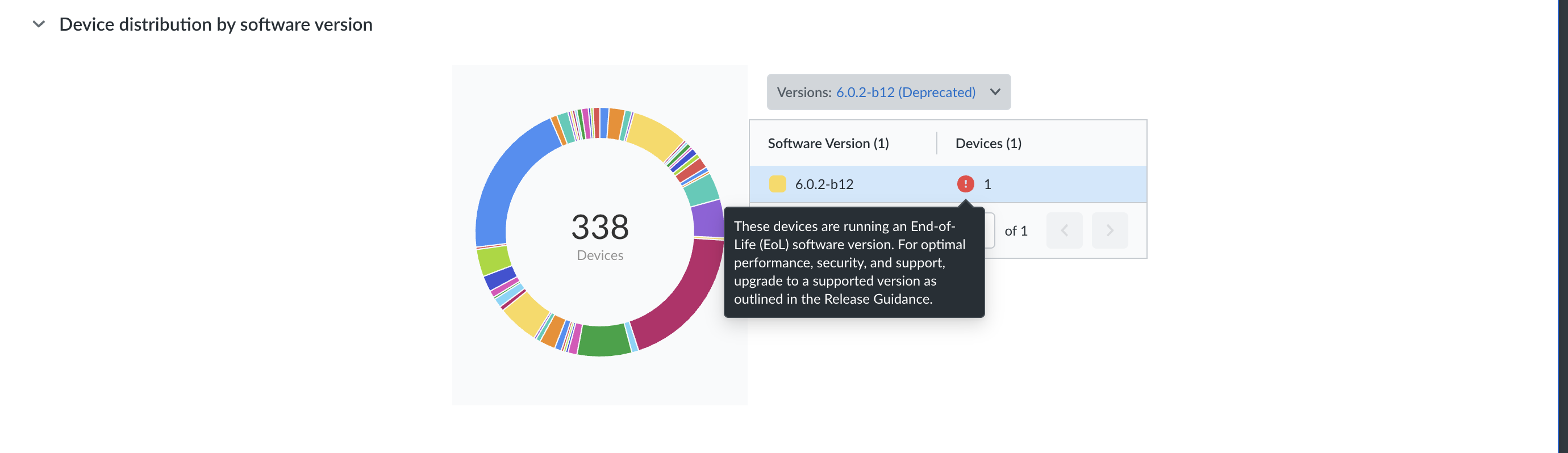 The Device distribution by software version dashboard widget