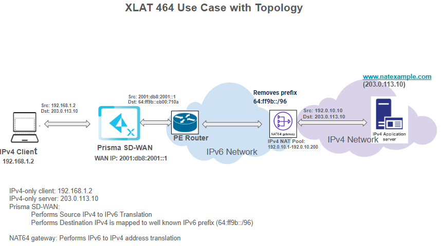 The XLAT464 use case allows an IPv4-only client to connect to an IPv4-only server by