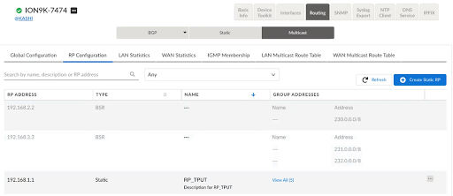 Select ConfigurationPrisma SD-WAN ION DevicesClaimedConfigure the deviceRoutingMulticastGlobal Configuration.
