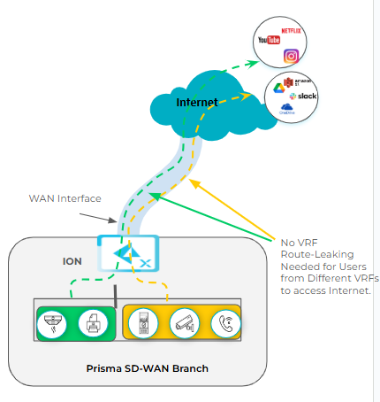 Prisma SD-WAN simplifies Direct Internet Access (DIA) for VRF-based branch segments by