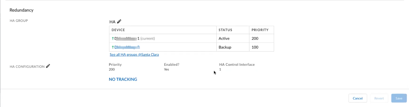 To make the device level configuration, on the Basic Info tab, on Redundancy, create HA groups, and then assign and configure HA.The Redundancy section displays the details of the devices in the HA group, including the status of the devices and the priorities set for the devices.Add HA Configuration.