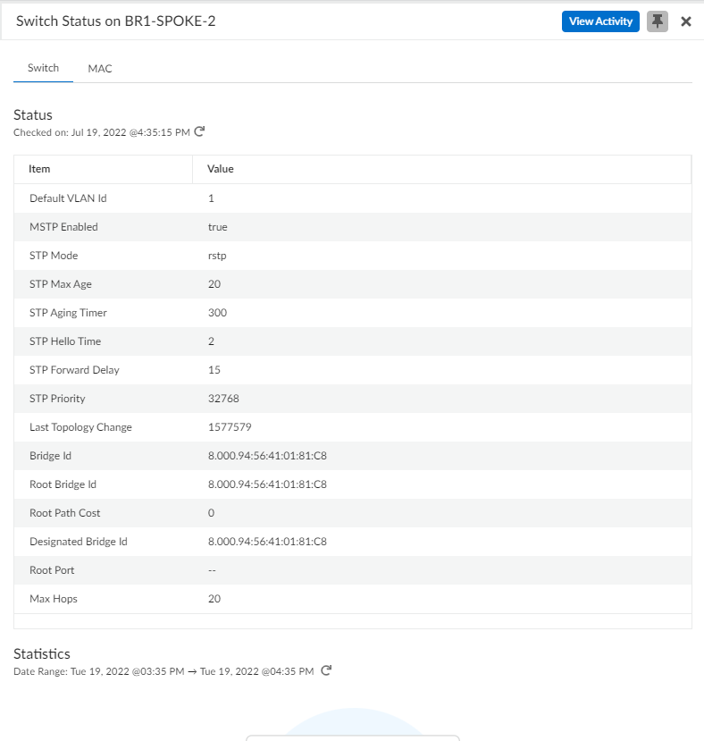 - Select ConfigurationPrisma SD-WANION DevicesClaimedSwitch.Click the Stats icon to view the Switch statistics.