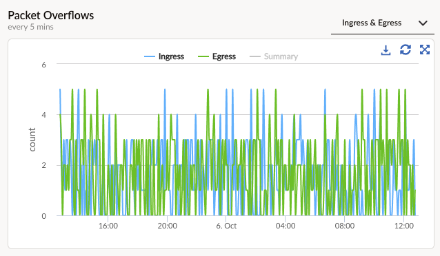 The Packet Overflows chart shows the packet