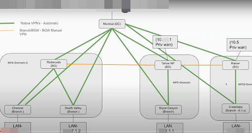 - Branch -> Branch Gateway (Different Domain) — You need to manually configure Fabric VPN Tunnels.