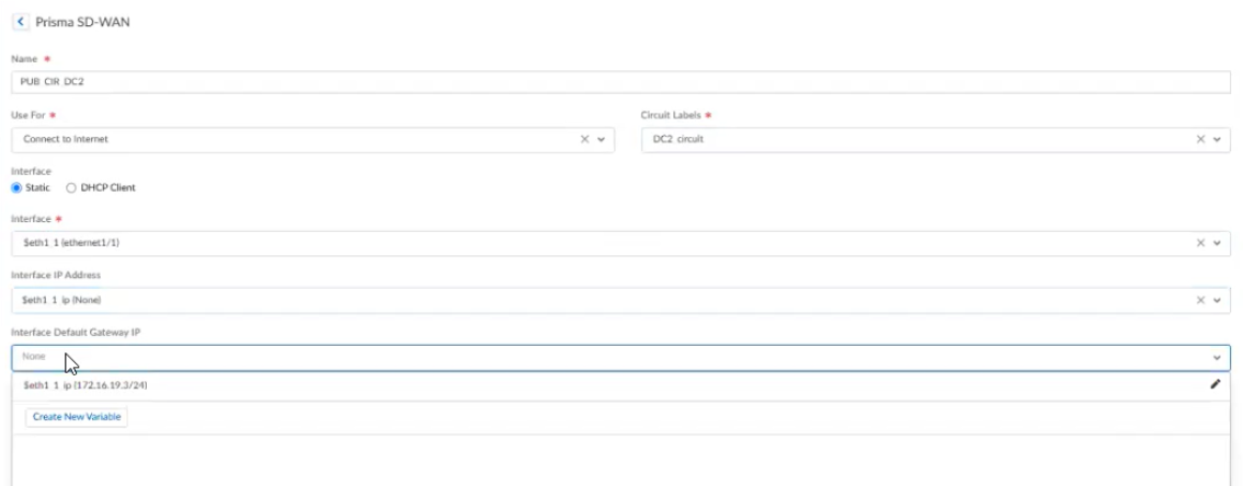 Assign the NGFW to a DC site on the Prisma SD-WAN controller. Select the