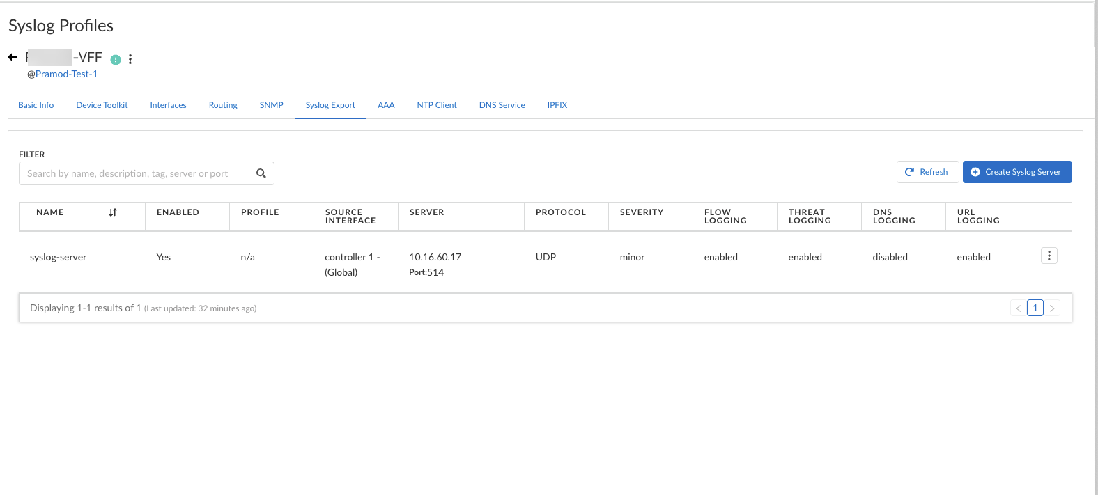 When adding a Syslog Profile in Prisma SD-WAN, you can configure the profile and select the Threat, DNS, and URL checkboxes for Security Logs. Syslog Profiles allow you to forward Log Collector logs as syslog messages to a syslog server from the Prisma SD-WAN web interface.- Select ConfigurationPrisma SD-WANProfiles and TemplatesSyslog.Select Create Syslog Profile.
