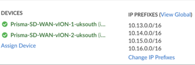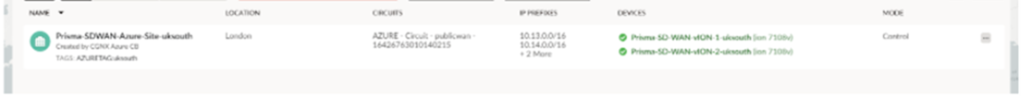 Go to ConfigurationPrisma SD-WANData Centers to check if the controller has created the Prisma SD-WAN Data Center site and assigned the vION HA pair to this site.