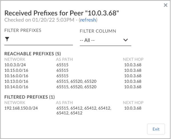 Check the received routes from the Cloud Router.