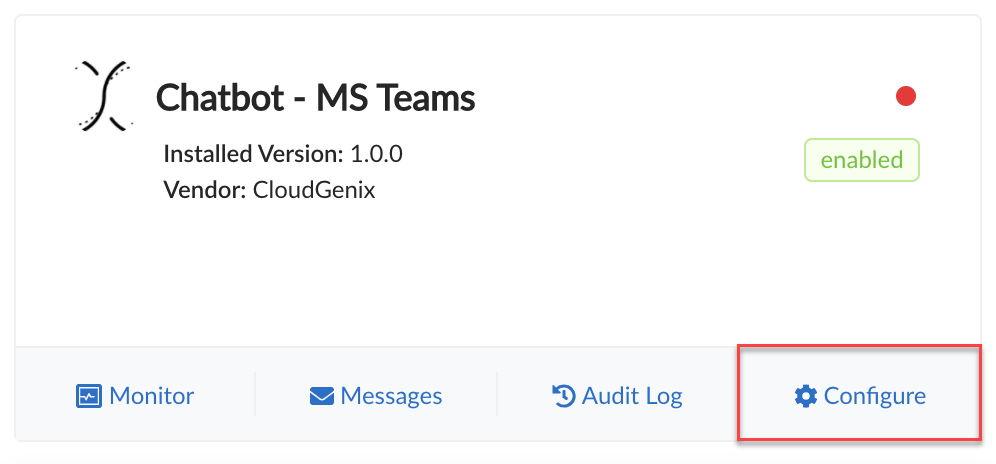 - From the Strata Cloud Manager, select ConfigurationPrisma SD-WANCloudBlades.In CloudBlades, locate the Chatbot MS Teams tile and click Configure.