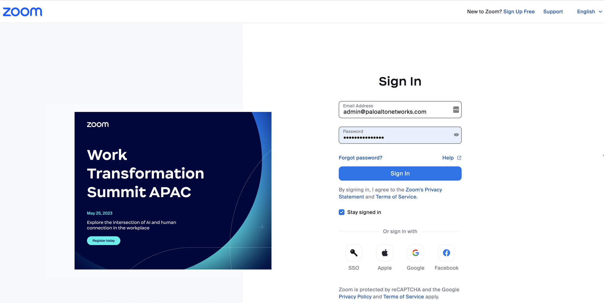 Enter your Zoom credentials (Email Address and Password) in the Zoom sign in page.