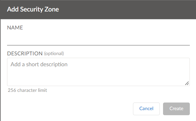 On the next screen, enter a name for the security zone and an optional description.Click Create.
