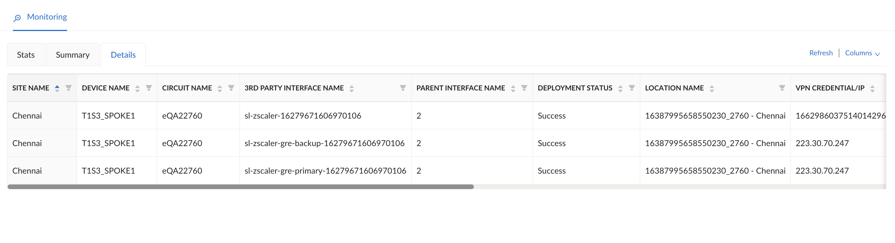 site from the Zscaler portal. This site has two circuits. Note that there is a third