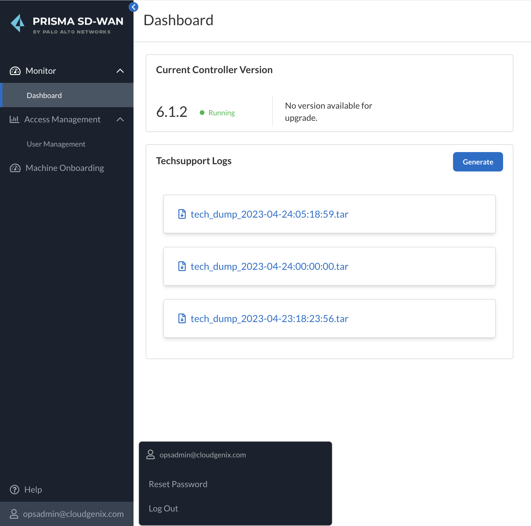 - Last two log files of each service.