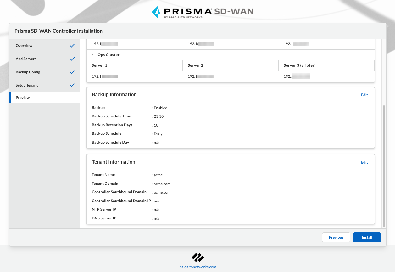 - Download qcow file. Contact your Palo Alto Networks Partner for assistance.Bring up the VM using the downloaded qcow file.Login to the VM using ubuntu/ubuntu.To format the disk space, execute the CLI command:printf 'd\n\nn\n\n\n\nN\nw' | sudo fdisk /dev/vdaKeep your management IP address handy and ensure it's not configured with DHCP.Access the Prisma SD-WAN Controller Installation user interface by using the URL https://<public IP of VM>:9443/installer.