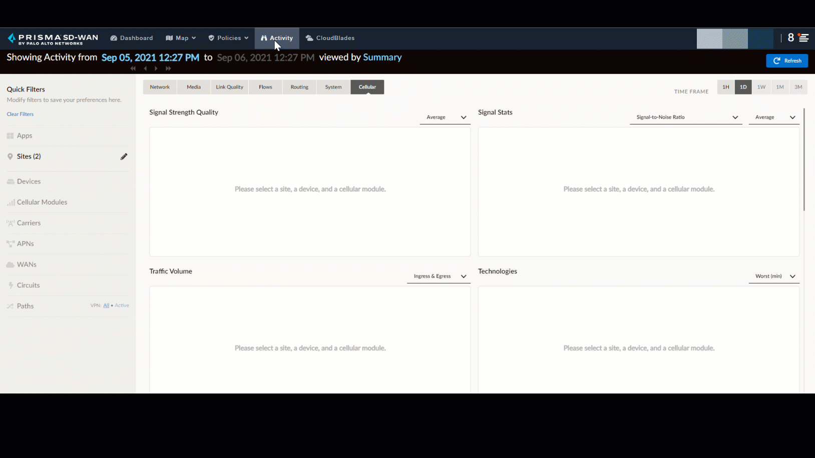 Cellular Telemetry | Prisma SD-WAN supports telemetry and statistics