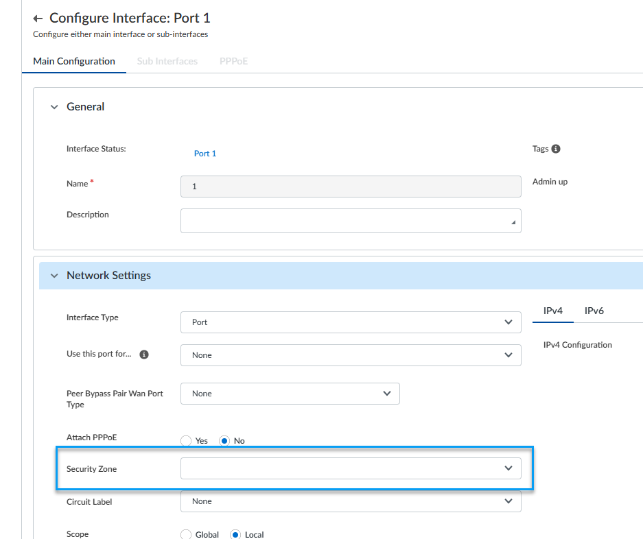 interfaces cannot be bound to a security zone.