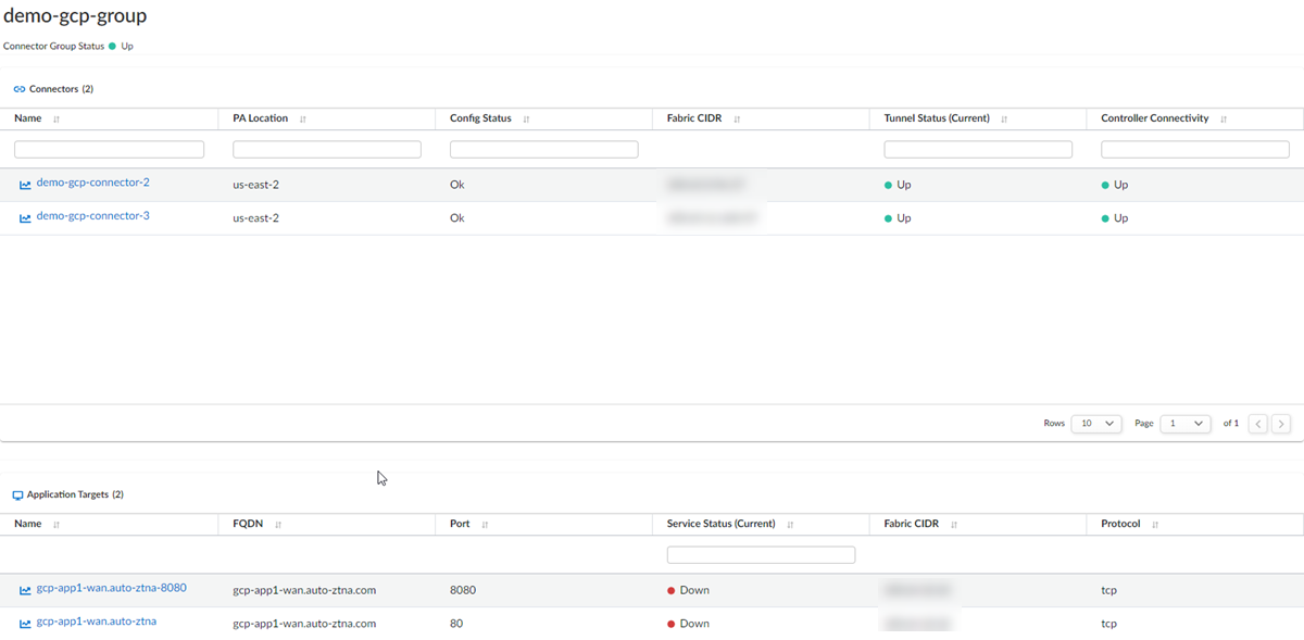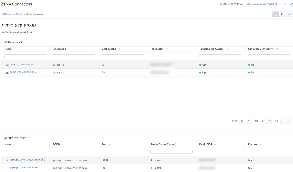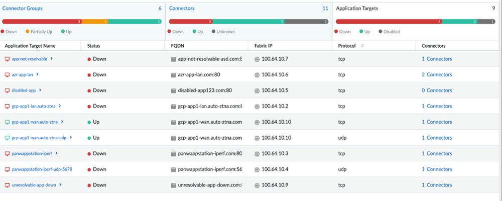 Application Targets—Select InsightsZTNA ConnectorsApplication Targets to see a summary of all configured Application Targets, including