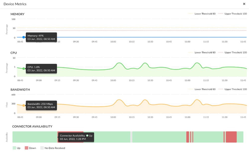 to see details about the Connector VM memory, CPU usage, bandwidth, and