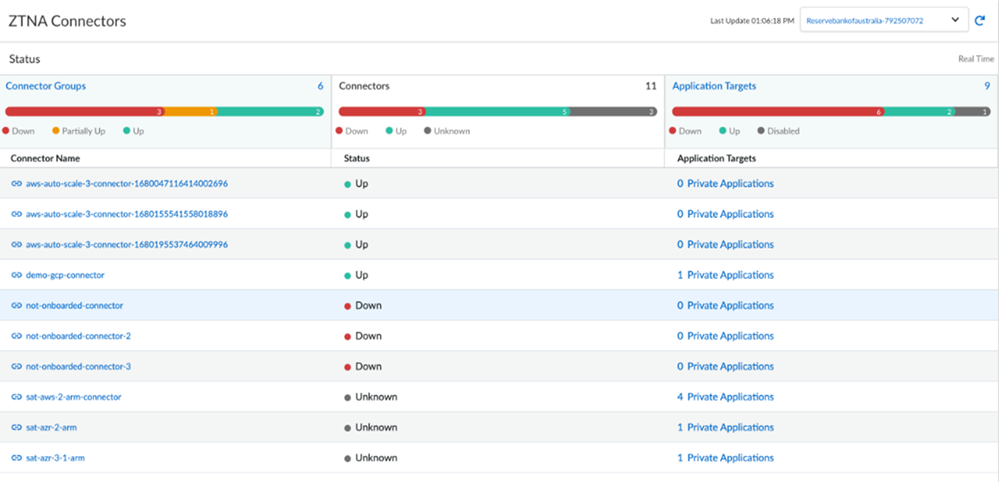 Connectors—Select InsightsZTNA ConnectorsConnectors to see a summary of all configured Connectors, including the