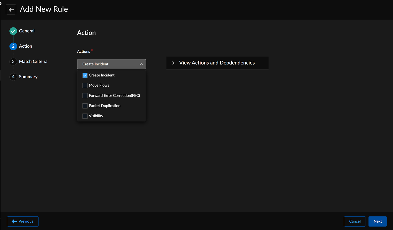 - Create Incident generates incidents for both Applications and Circuits using link quality and application performance SLA criteria, where applicable incidents are automatically correlated.