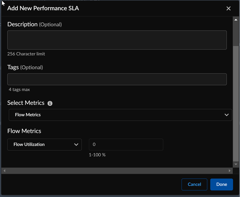 - Check the desired performance SLA and enter the respective thresholds for the SLA.