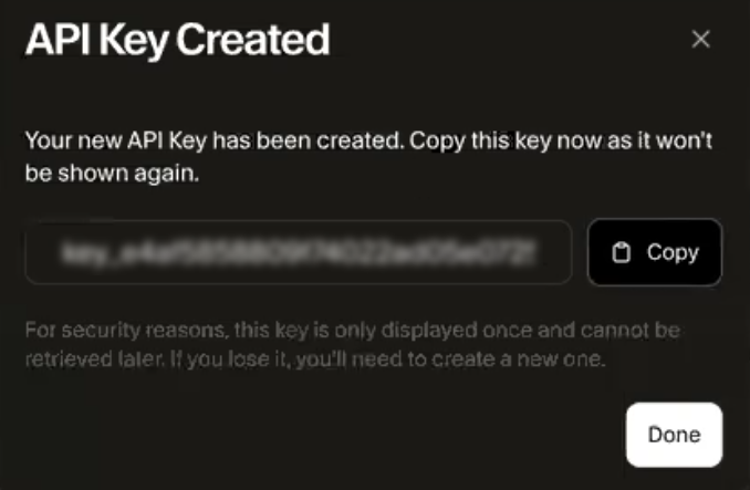 - Go to the Cursor Enterprise dashboard and select SettingsAPI KeysNew API Key.