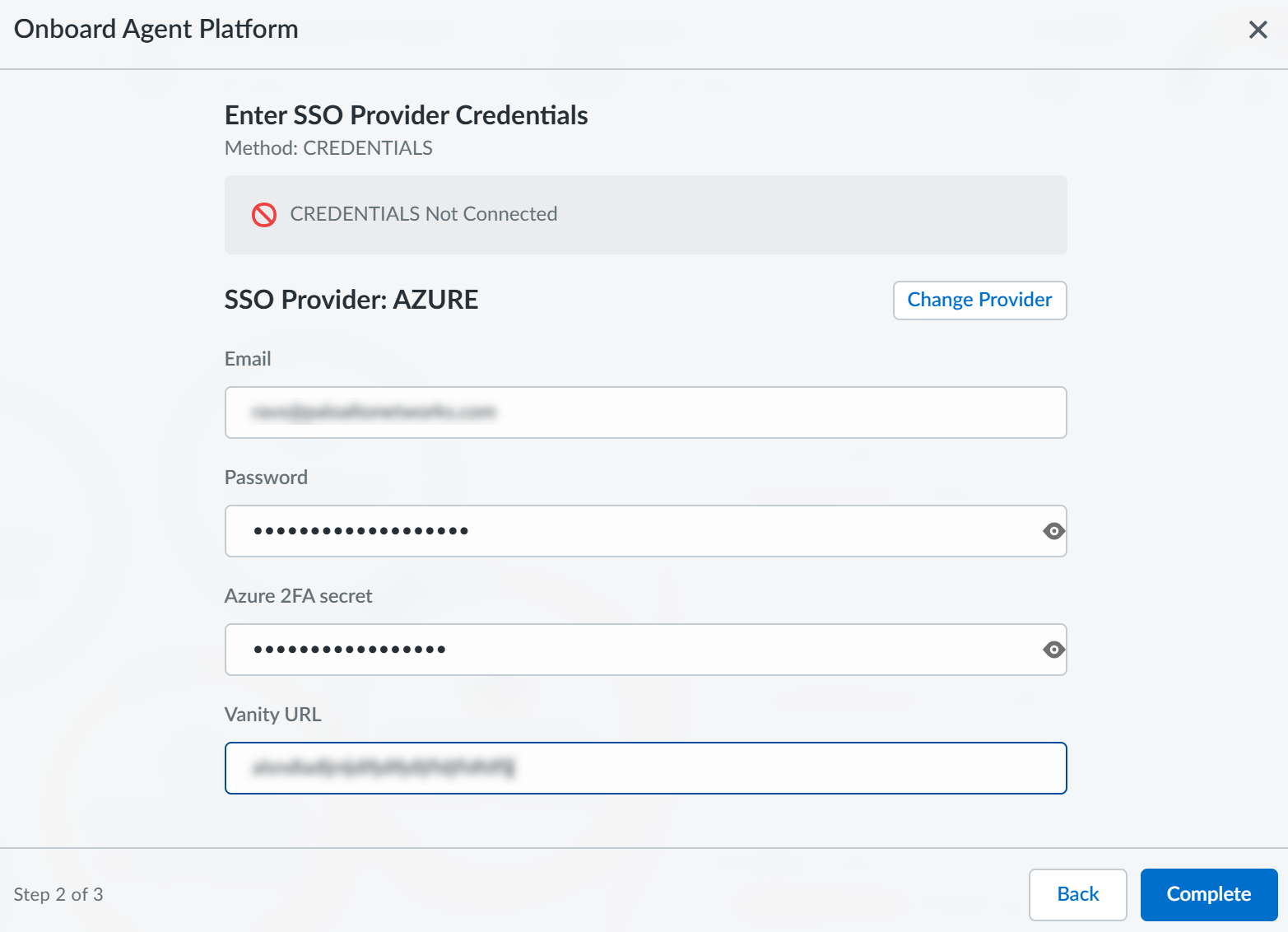 Enter the following information in the SSO Provider details page and Complete:- Email address