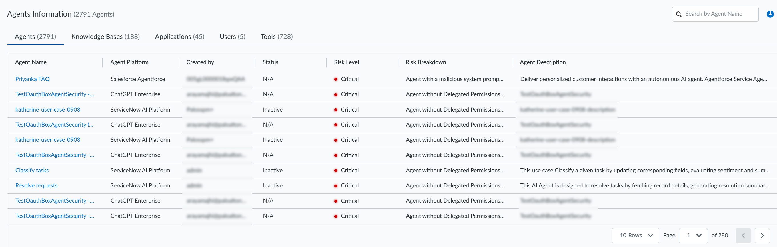 deployed in the agentic platforms that you have onboarded to SaaS Agent Security. From the initial high-level view of all agents